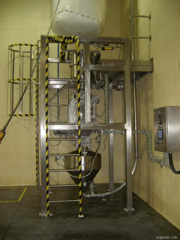 噸包拆包機卸載方式主要分為兩種:一種是大袋開袋后和大袋卸料站叉車將大袋(或噸袋)吊裝到卸料機的機架上,它本身不帶起重設備,二是大袋開袋站和大袋卸料站是靠自身的起重設備將大袋(或噸袋)吊裝到卸料機的機架上,不需要外界的幫助,它通過提升噸袋至設備進料口,人工拆開噸袋下料口,打開流量閥并附以拍打、振動、破碎等裝置,促使袋內的粉粒狀物料靠重力落進料倉來完成拆包卸料工作,整個過程是全自動控制,系統操作穩定,能完成連續拆包的任務,操作過程簡單方便,通過相關實驗結果可知,拆完一包料的時間大約是5-6分鐘,領先于國內大多機械設備生產公司。
